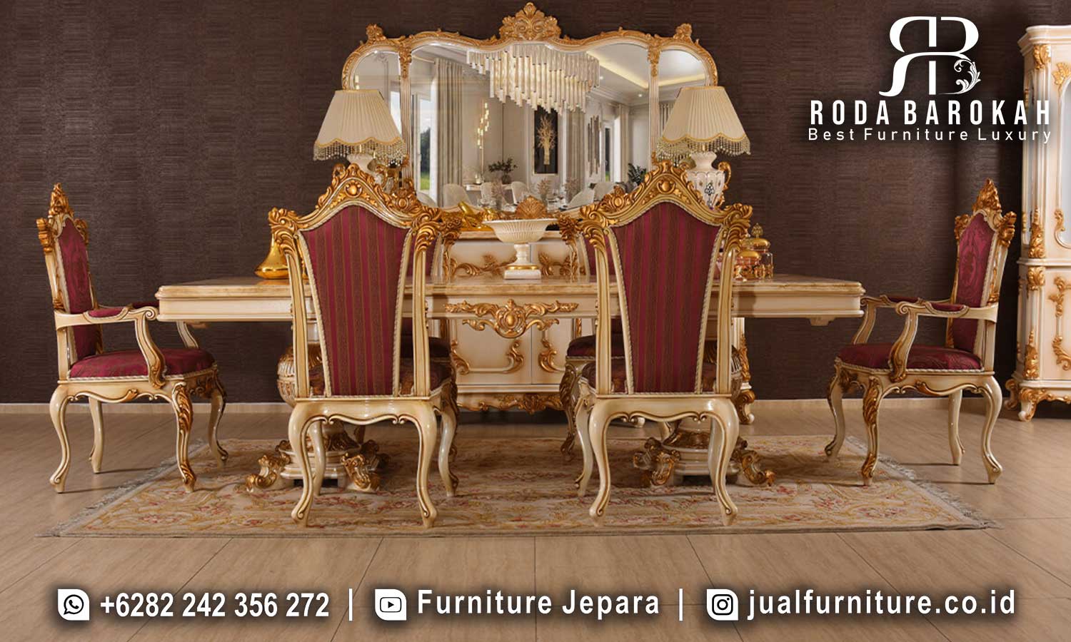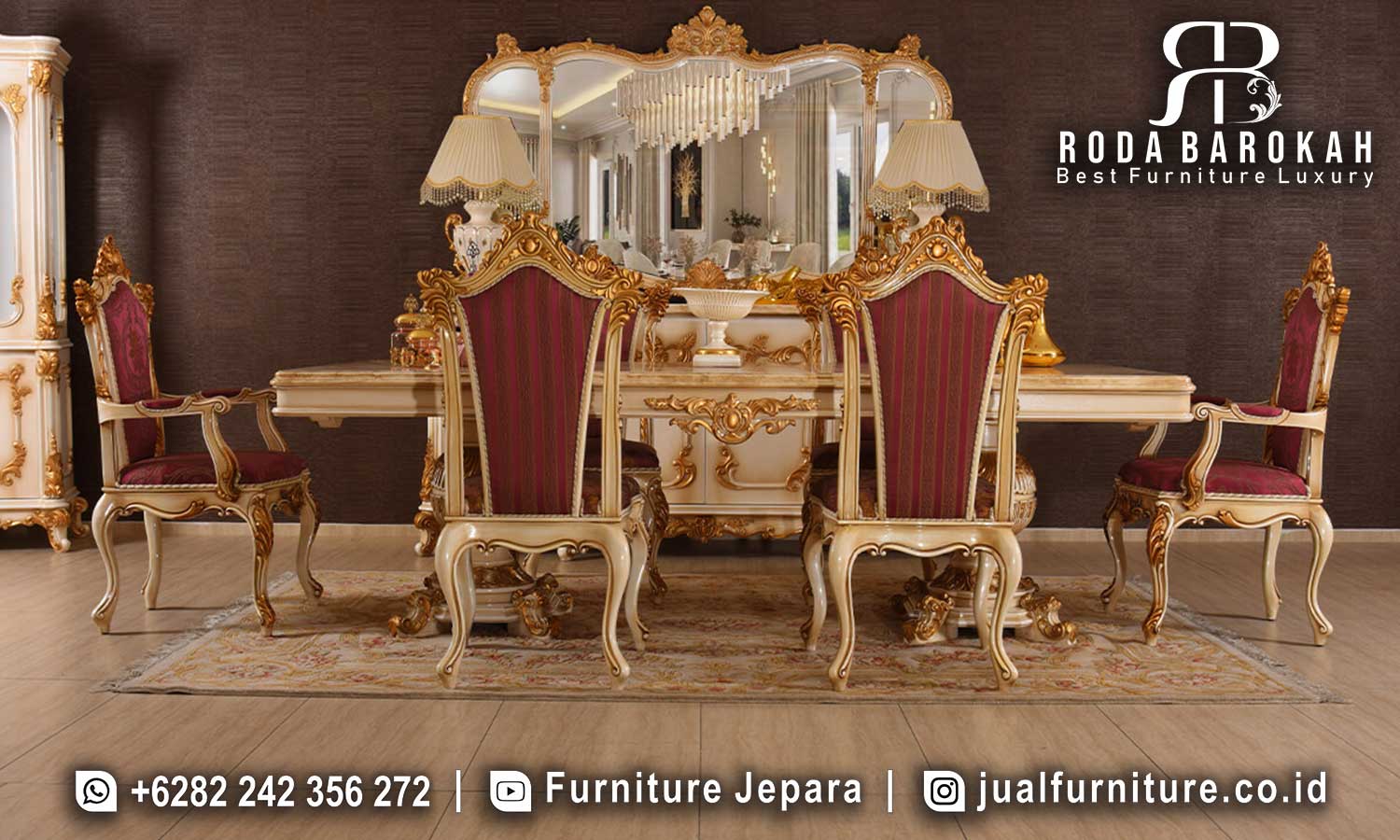 Kunjungi warehouse kami di Jepara untuk melihat langsung produk dan melakukan transaksi tunai. Dengan cara ini, Anda bisa memastikan kualitas Best Seller Meja Makan Mewah sebelum mengambil keputusan pembelian.