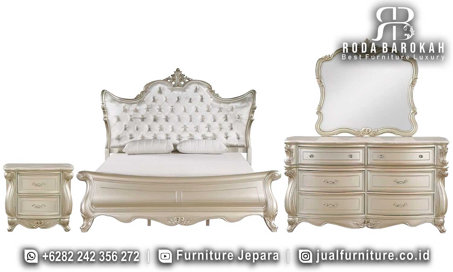Mewujudkan kenyamanan dan keanggunan dalam satu paket, Desain Kamar Tidur Mewah Modern Imperiale Standar Ekspor FS1047 dirancang untuk menciptakan suasana tidur yang sempurna. Dengan rangka kayu jati yang dikerjakan secara profesional, setiap detailnya memancarkan nuansa elegan dan keindahan yang tak lekang oleh waktu. Selain itu, finishing duco memberikan lapisan yang halus dan bercahaya, sehingga menjadikan produk ini pilihan ideal untuk mempercantik ruang tidur Anda.