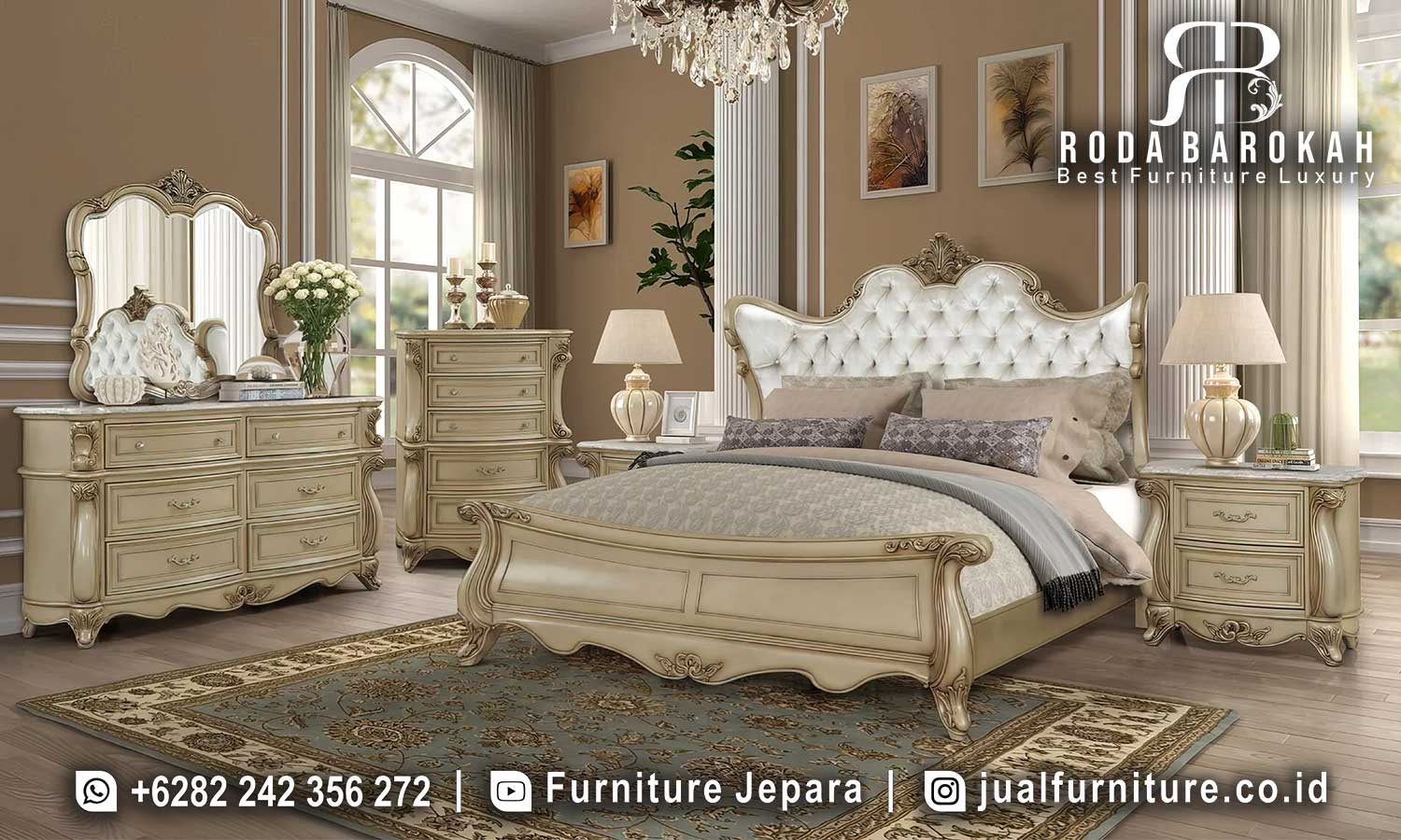 Kunjungi warehouse kami di Jepara untuk melihat langsung produk dan melakukan transaksi tunai. Dengan metode ini, Anda dapat memastikan kualitas Desain Kamar Tidur Mewah Modern sebelum membeli.