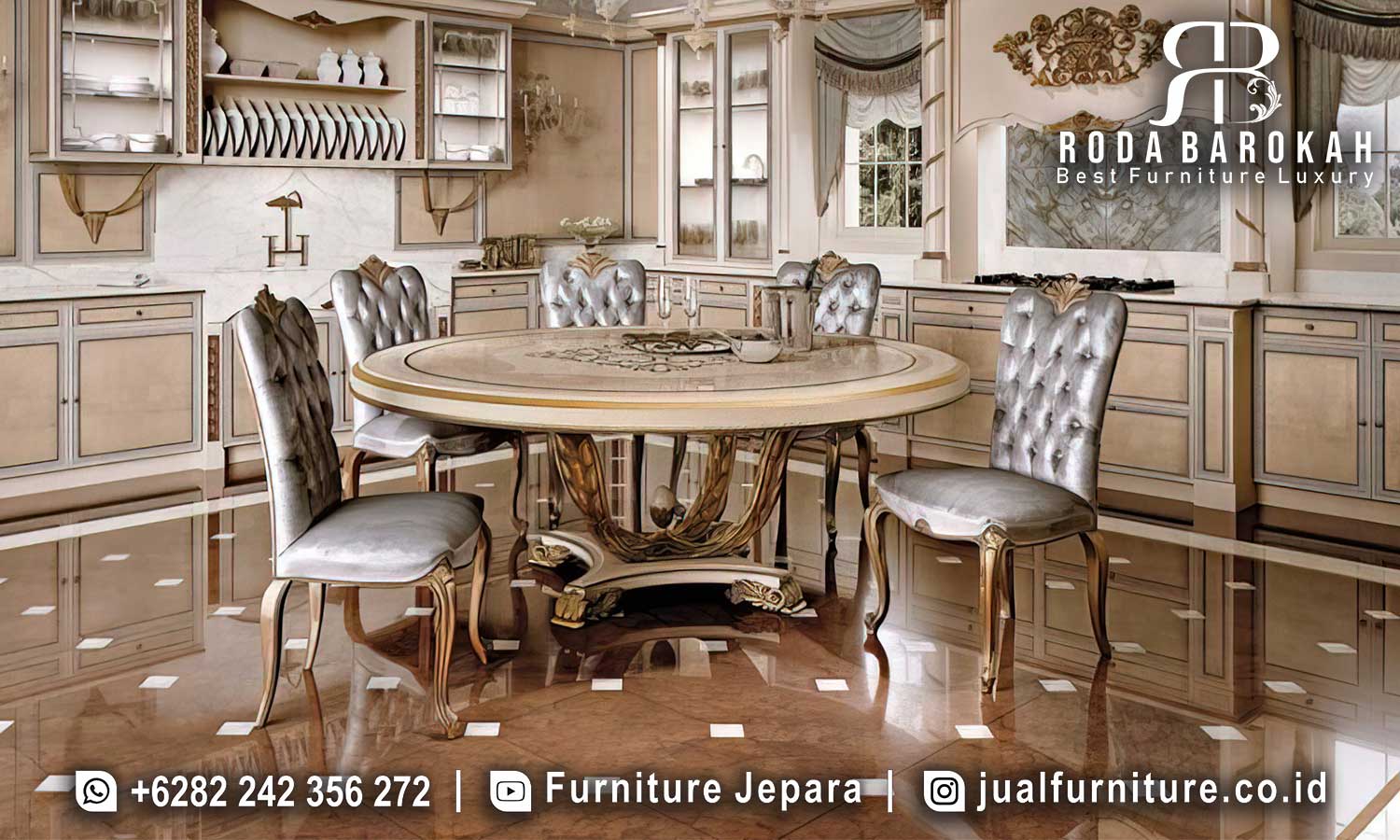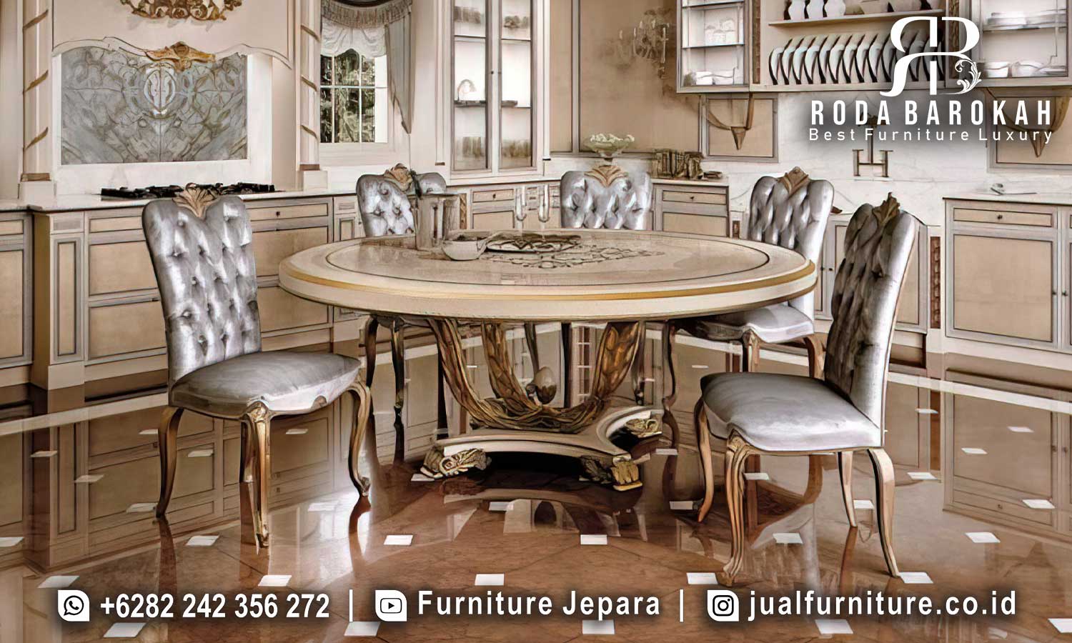 Jual Meja Makan Mewah Bundar Royale Desain Elegan FS-992