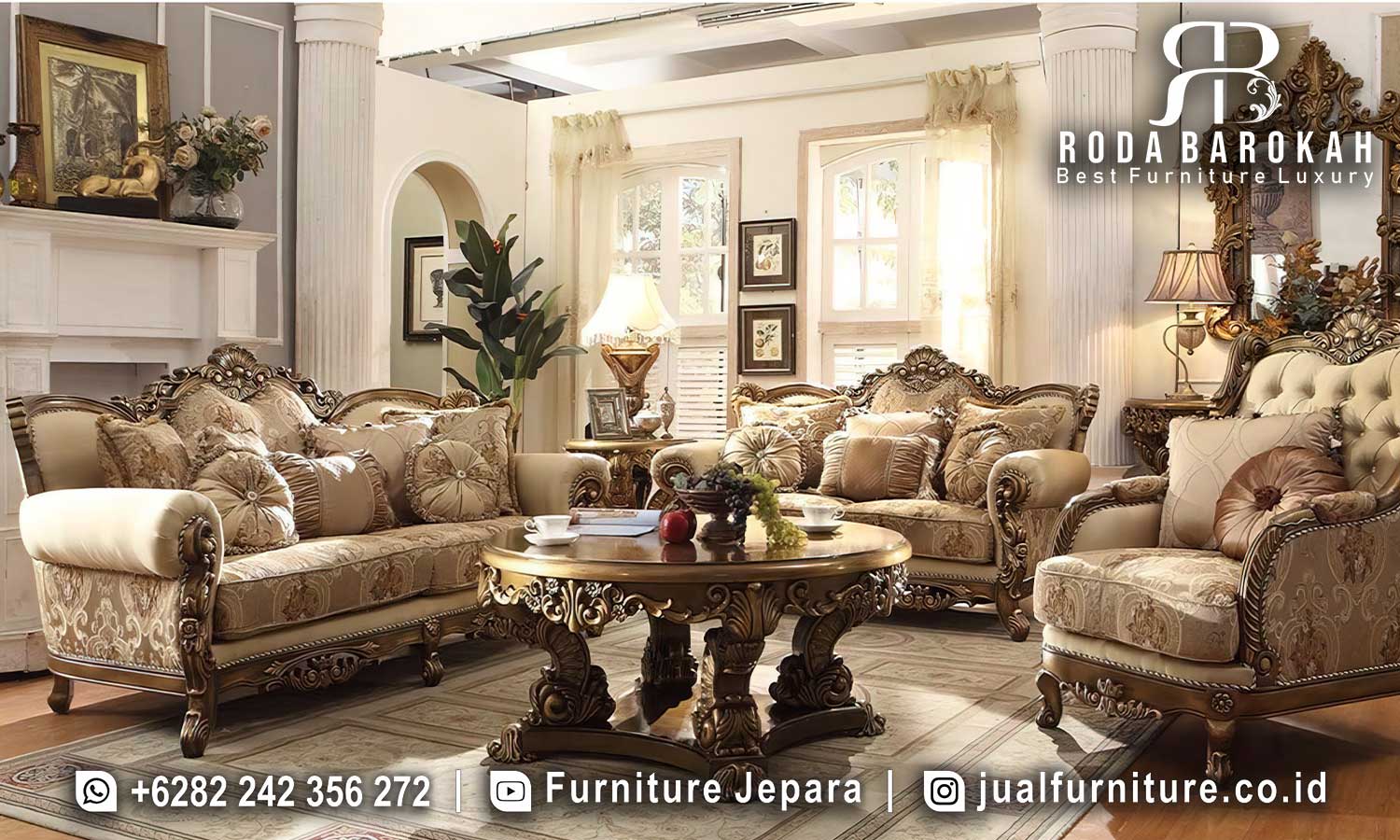 Desain klasik Eropa pada sofa ini memadukan keanggunan dan fungsionalitas. Selain itu, warna krim gold yang menawan akan membuat ruang tamu Anda terasa lebih luas dan terang. Dengan sandaran tinggi dan ornamen ukiran yang indah, sofa ini tidak hanya nyaman tetapi juga menjadi karya seni yang menarik. Misalnya, Anda bisa membayangkan sebuah suasana santai bersama keluarga sambil menikmati momen berharga di sofa yang memikat ini.