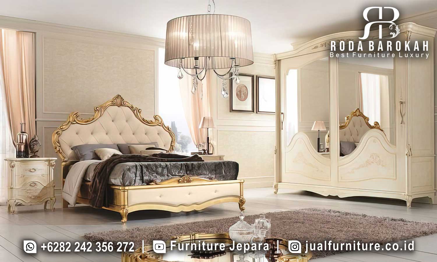 Gaya klasik modern yang diterapkan pada desain set kamar ini menjadikan ruang tidur Anda lebih menawan dan berkelas. Dengan warna krim dan emas yang harmonis, set kamar ini akan memberikan suasana damai dan menenangkan. Selain itu, kain bludru yang digunakan sebagai pelapis menambah kenyamanan dan kesan mewah saat Anda bersantai di atasnya. Bayangkan menikmati waktu tidur nyenyak di atas dipan yang dilengkapi dengan busa density yang empuk.