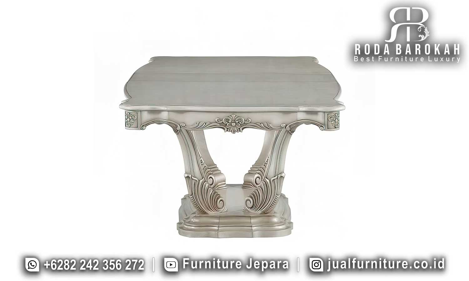 Meja Makan Mewah Klasik Amalfi Tampilan Klasik FS-932 memancarkan kemewahan dan ketajaman desain klasik, menjadikannya instrumen sempurna untuk pertemuan formal. dari kayu jati berkualitas tinggi, meja ini tidak hanya menawarkan daya tarik visual tetapi juga kekuatan dan durabilitas. Selain itu, ukiran klasik yang halus menambah karakteristik elegan yang akan membuat setiap hidangan jadi istimewa. Bayangkan suasana hangat dan mengesankan saat Anda menjamu keluarga atau teman dengan perabotan ini.