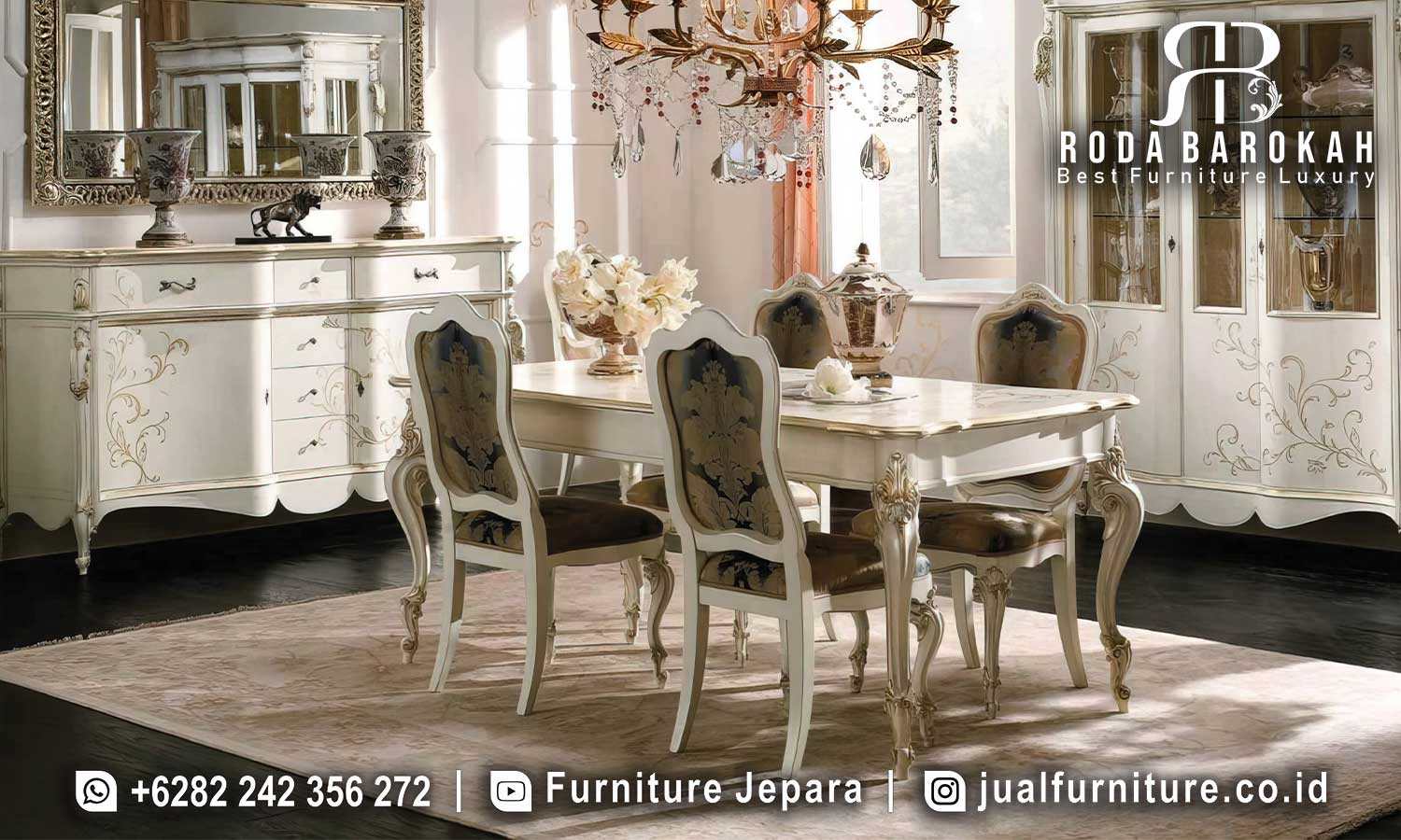 Tanpa diragukan lagi, Meja Makan Mewah Mewah memberikan keanggunan tersendiri berkat warna putih gold yang mewah. Nah, dengan sandaran kursi tinggi dan busa jok tebal berkualitas, setiap hidangan akan terasa lebih istimewa. Terlebih lagi, detail jahitan kain Oscar yang rapi menambah kesan premium pada produk ini. Oleh sebab itu, Anda tidak hanya membeli furniture, tetapi juga investasi jangka panjang untuk keindahan rumah Anda.