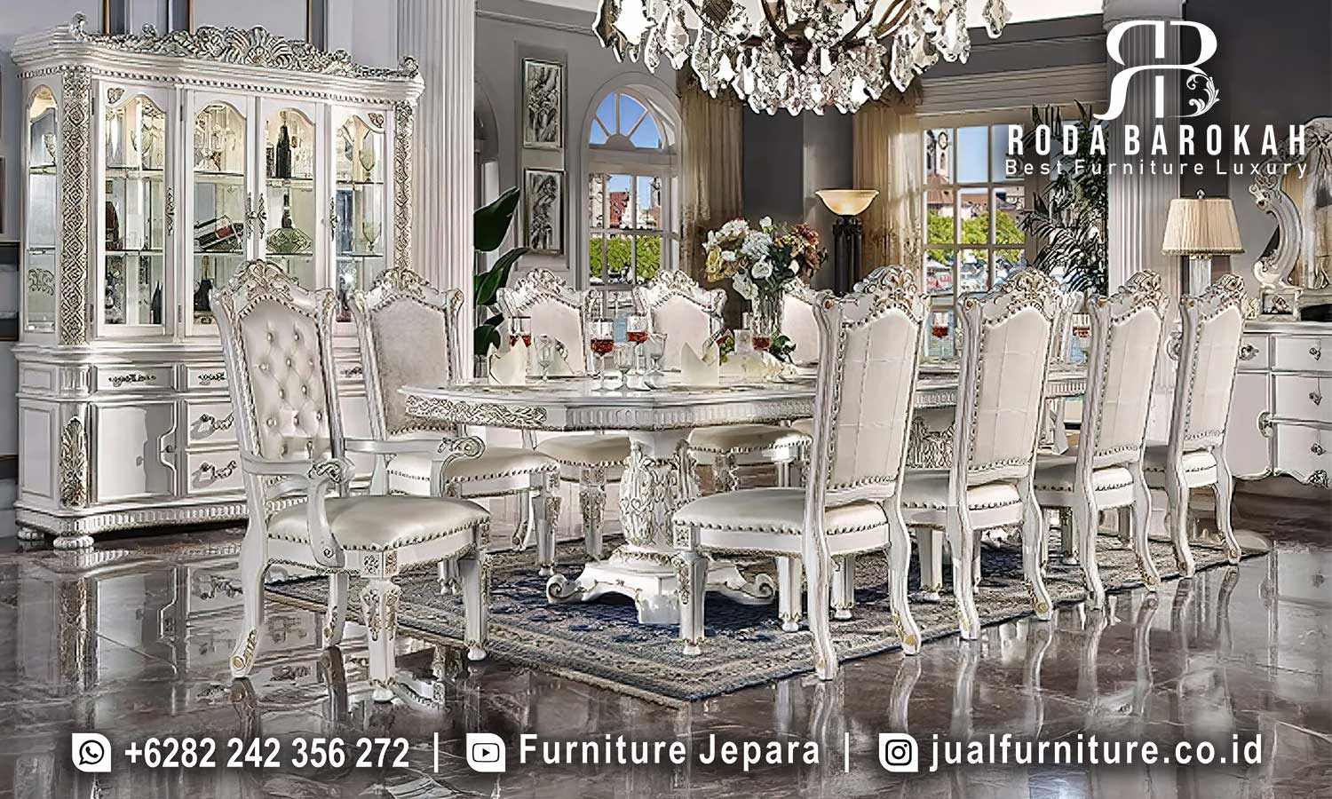 Model Meja Makan Mewah Klasik Siena Ornamen Elegan FS1039
