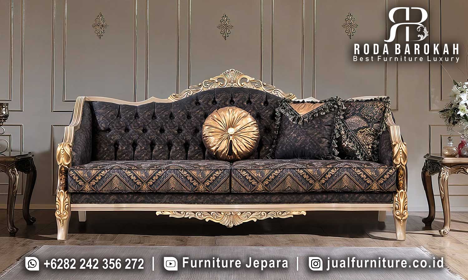 Sale Kursi Sofa Ukir Gold adalah pilihan sempurna bagi Anda yang ingin menambah glamour di ruang tamu. Didesain dengan warna hitam emas yang elegan, kursi ini memberikan nuansa mewah sekaligus kenyamanan berkat sandaran tinggi dan bantal hias yang terintegrasi. Bayangkan ruang tamu Anda dikelilingi oleh keindahan barok, menciptakan suasana yang hangat dan menyambut setiap tamu dengan penuh gaya. Di samping itu, kombinasi material kayu jati dan kain bludru menjadikan produk ini bukan hanya cantik, tetapi juga kuat untuk digunakan sehari-hari.