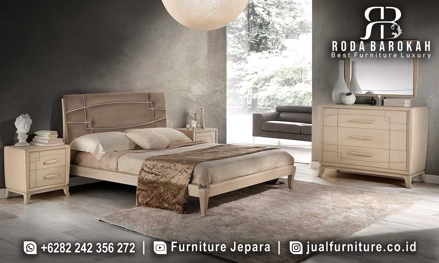 Di samping itu, set kamar tidur ini dilengkapi dengan lemari dan meja samping, memudahkan Anda menyimpan barang-barang, menjaga ruangan tetap rapi dan terorganisir. Kemewahan tidak hanya hadir dari tampilan, tetapi juga dari fungsionalitas yang ditawarkan. Dalam setiap komponen, Anda akan merasakan inspirasi untuk menciptakan ruang tidur yang tidak hanya cantik, melainkan juga nyaman. Oleh karena itu, Set Kamar Tidur Mewah ini sangat cocok bagi Anda yang mencari kesempurnaan dalam setiap detail.