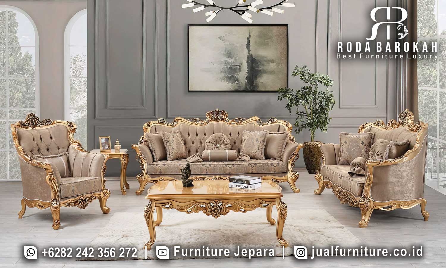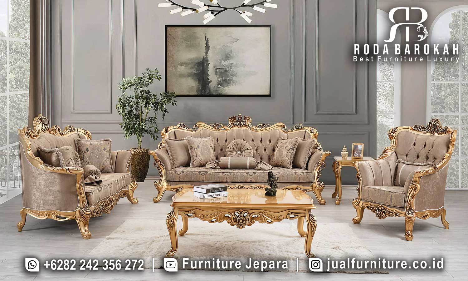 Sofa Tamu Valero Mewah menonjolkan keanggunan yang tak tertandingi. Dengan rangka kayu jati dan finishing gold doff, sofa ini bukan hanya sekadar perabot; ia adalah pernyataan gaya. Ornamen ukiran klasik yang menghiasi sofa ini menambah daya tarik visual, menjadikannya pilihan sempurna untuk ruang tamu Anda. Oleh karena itu, hadirkan sentuhan glamor di rumah Anda dengan Sofa Tamu Valero Mewah ini.