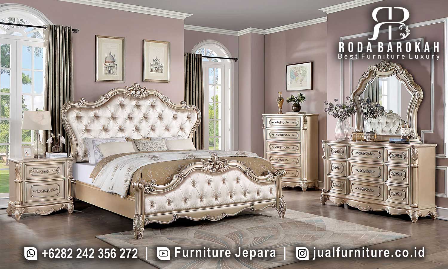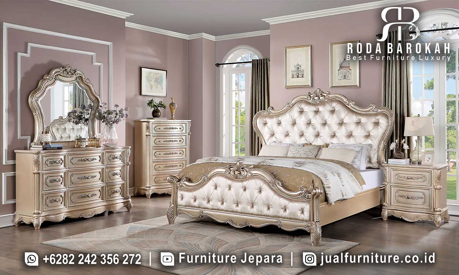 Tempat Tidur Jati Mewah Modena Bernuansa Klasik FS1021 adalah pilihan sempurna untuk meningkatkan keindahan dan nuansa kemewahan dalam kamar tidur Anda. Terbuat dari kayu jati berkualitas tinggi, produk ini tidak hanya menawarkan daya tarik visual yang luar biasa, tetapi juga ketahanan yang dapat Anda andalkan selama bertahun-tahun. Dengan finishing gold leaf yang elegan, tempat tidur ini menghadirkan kesan klasik yang tak lekang oleh waktu. Oleh karena itu, Anda akan merasakan kenyamanan dan kemewahan yang menyelimuti setiap malam tidur Anda.