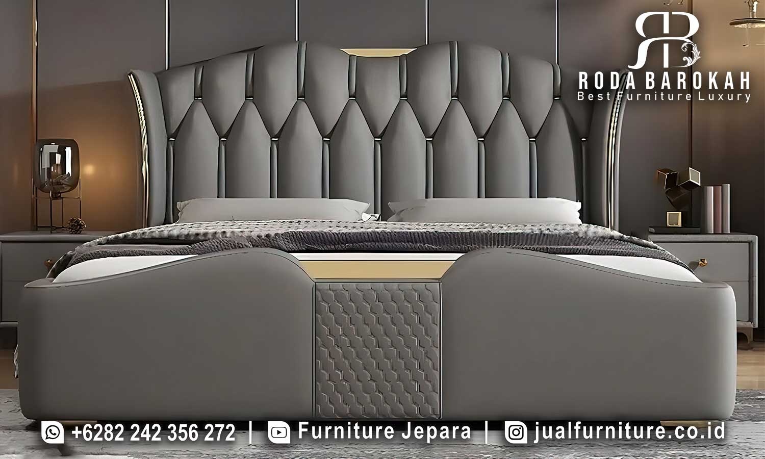 Beralih ke detail visual, tempat tidur ini hadir dalam warna abu-abu yang menenangkan, membuatnya mudah dipadupadankan dengan berbagai gaya dekorasi, termasuk minimalis modern. Selain itu, sandaran tinggi yang dilengkapi dengan jahitan tufted memberikan kesan mewah sekaligus nyaman saat bersandar. Dengan menambahkan Tempat Tidur Mewah Modern ini ke dalam pilihan furnitur Anda, ruangan akan berubah menjadi oasis ketenangan.