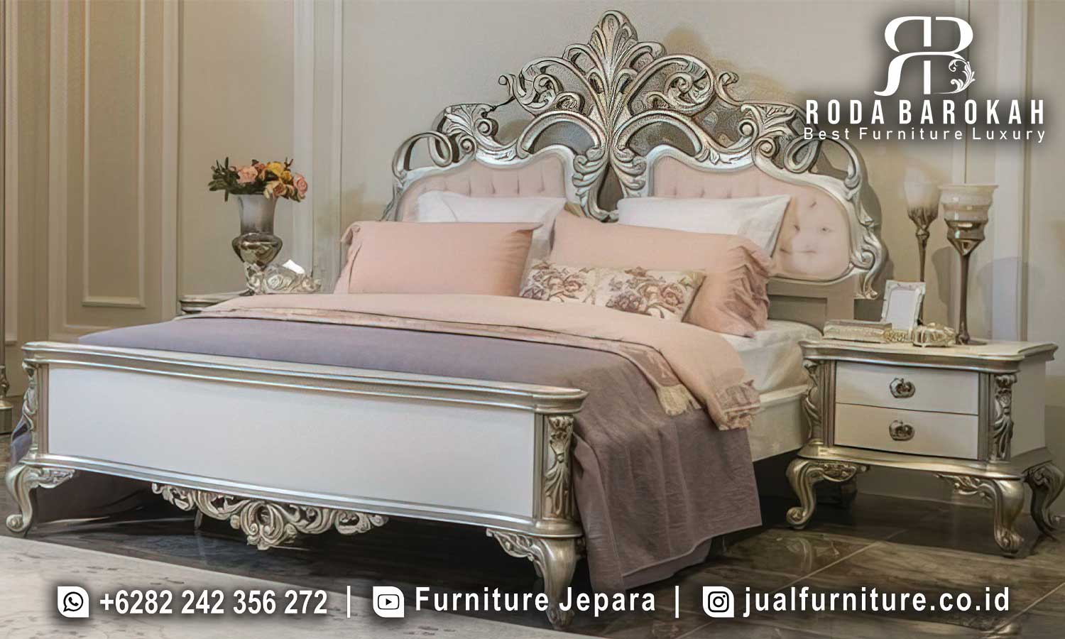 Set Tempat Tidur Mewah FS-859 hadir dengan kayu jati finishing perak dan kain bludru elegan, sempurna untuk menciptakan suasana klasik mewah di kamar tidur Anda. Dengan desain yang menawan, set ini tidak hanya memancarkan kemewahan, tetapi juga menawarkan kenyamanan dan gaya yang sejalan dengan tren terkini. Atmosfer yang diciptakan oleh warna silver dan pastel pink memberikan nuansa lembut dan kaya, menjadikannya pilihan ideal bagi Anda yang ingin menambahkan keanggunan dalam ruang pribadi.